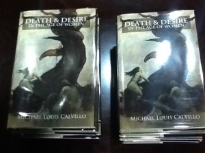 Eight copies of my latest (greatest?) novel, DEATH & DESIRE IN THE AGE OF WOMEN, have slithered their way home. Thanks to Bloodletting Books for doing such a bang-up job. Have you seen those endpapers? The gorgeous cover art? If you’ve got yours (thank you very much for the support) – you know what I’m talking about. If not, good luck. I’ve warned you and warned you and warned you…